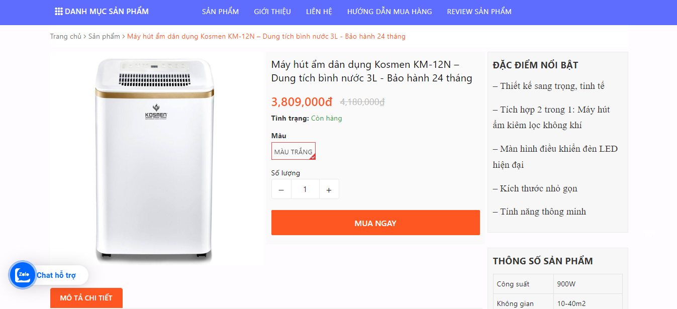 Bước 1: Tại website của TRUNGHA Store bấm chọn sản phẩm quý khách muốn mua. Sau khi chọn số lượng và màu sắc, quý khách nhấn vào nút MUA NGAY
