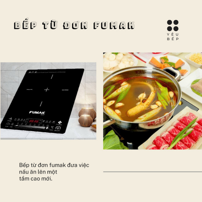 - Bếp từ đơn Fumak công suất 2000W, mức nhiệt tối đa lên đến 270°C
