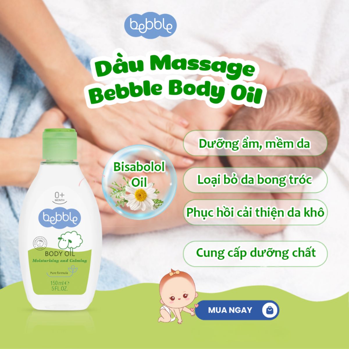 – Sử dụng dầu Massage Bebble Body Oil giúp tăng sự phát triển toàn diện cho bé