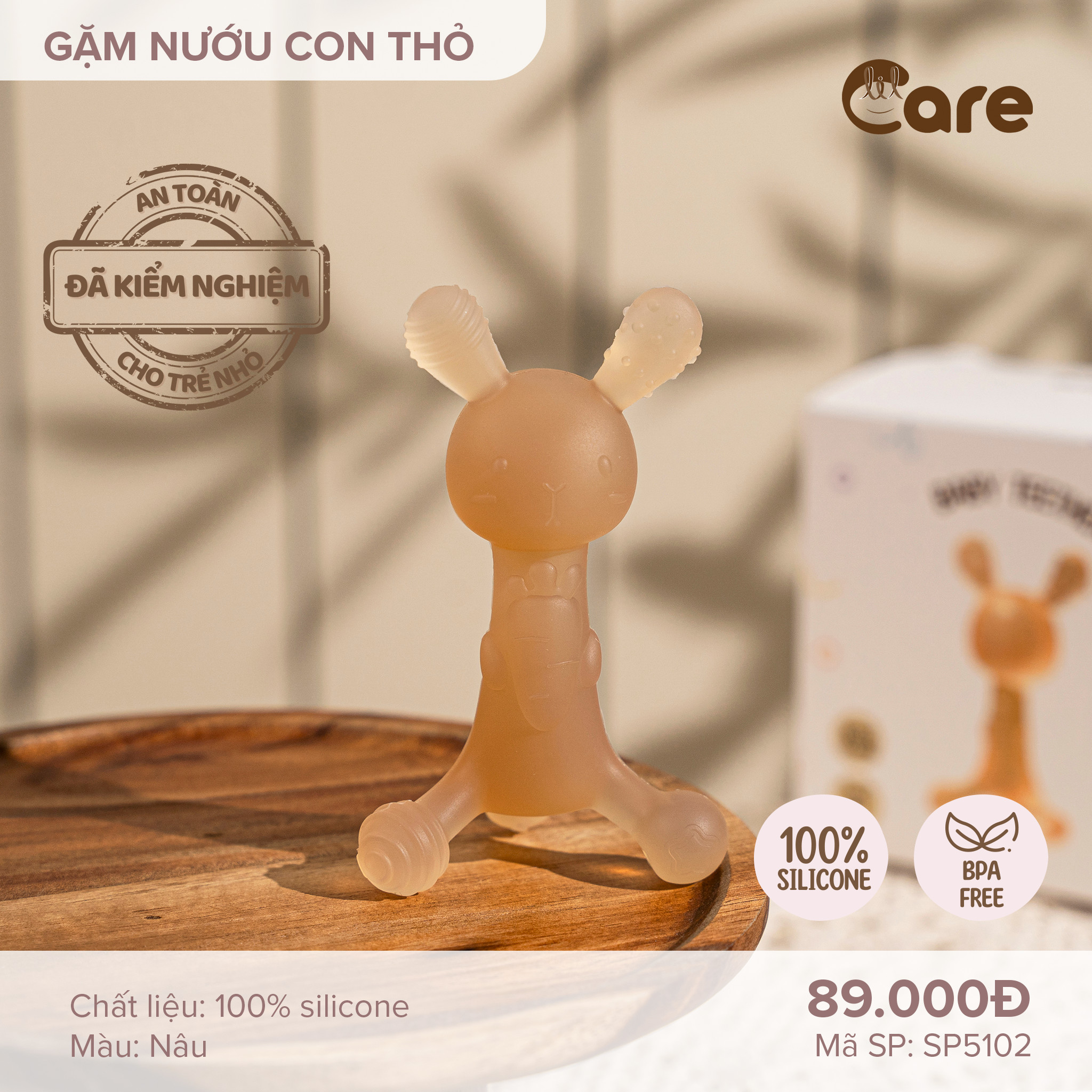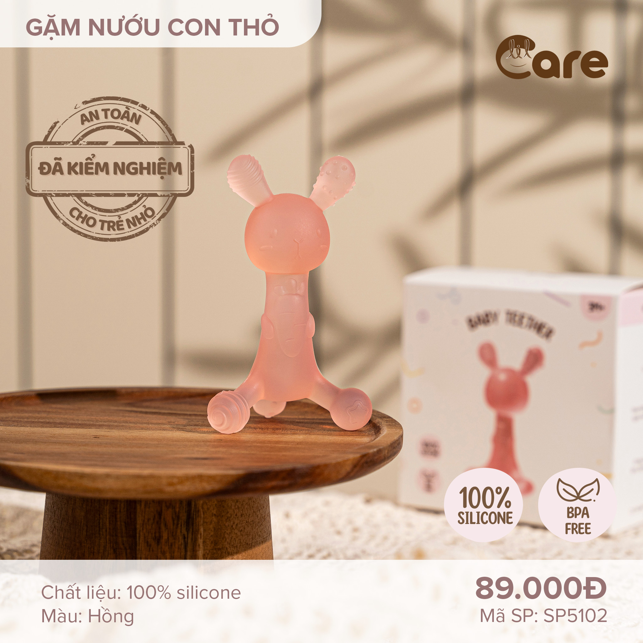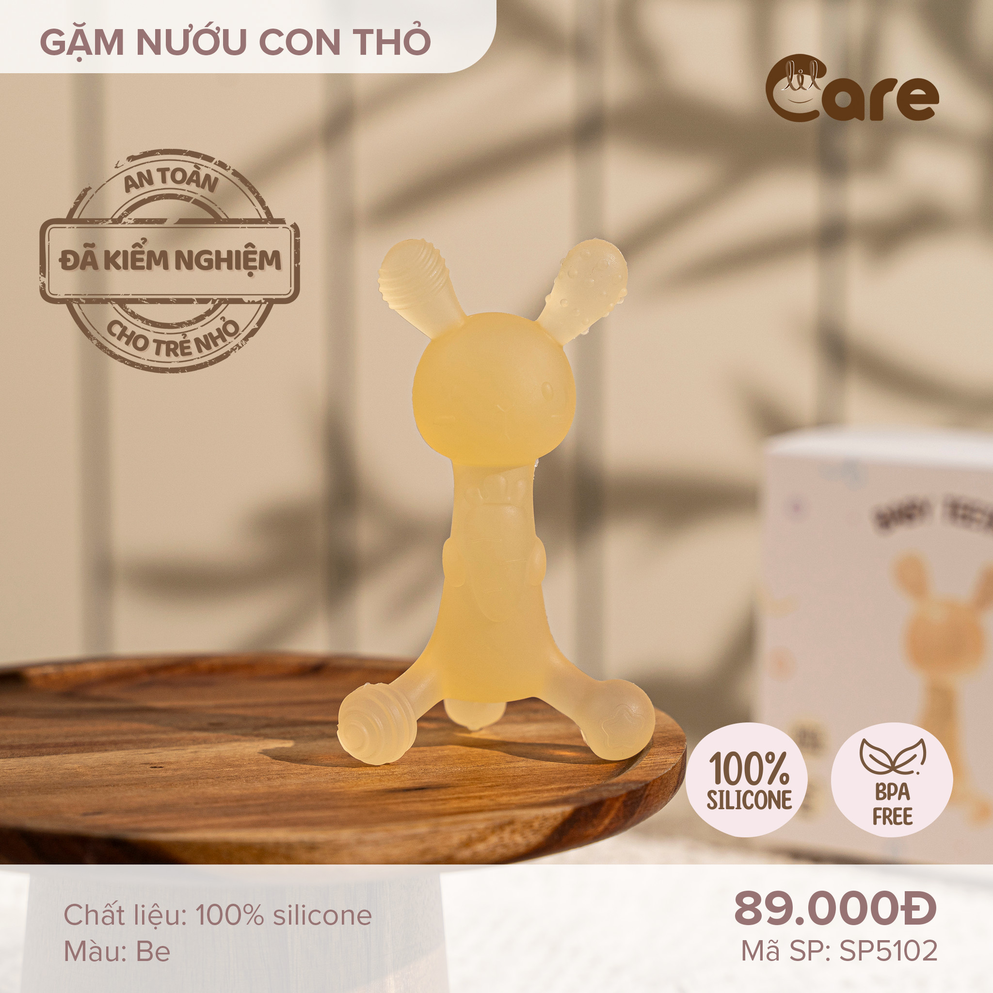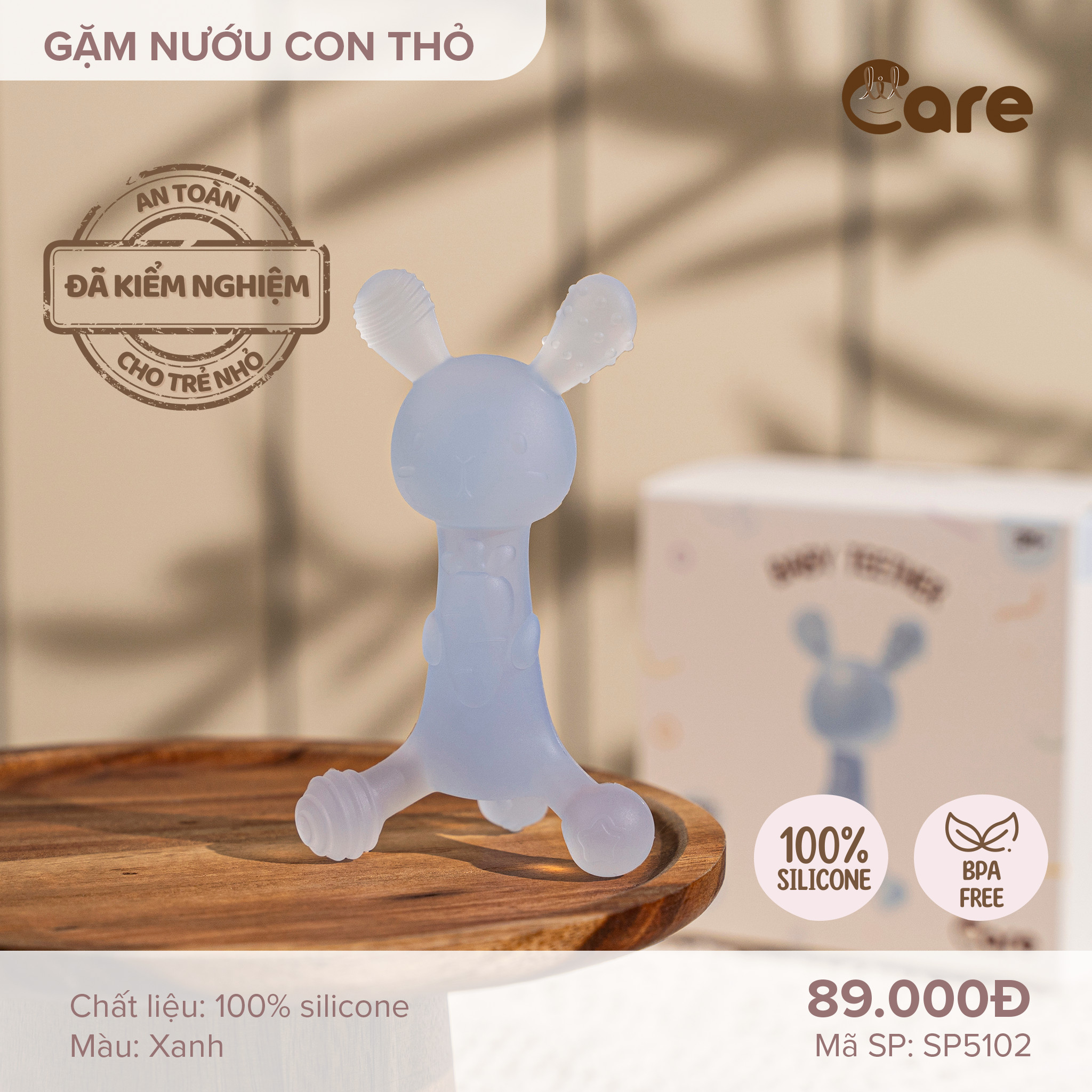 Sản phẩm được làm từ chất liệu 100% silicon organic cao cấp, hoàn toàn không chứa BPA, PVC hay các hạt độc hại khác, CÓ GIẤY CHỨNG NHẬN KIỂM ĐỊNH AN TOÀN CHẤT LƯỢNG VNTEST. Gặm nưới LIL CARE rất mềm dẻo, bé có thể cắn cả ngày mà không lo tổn thương lợi như là để bé gặm các loại đồ chơi cứng.
